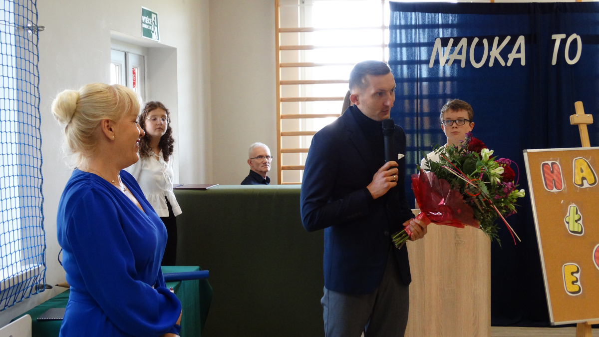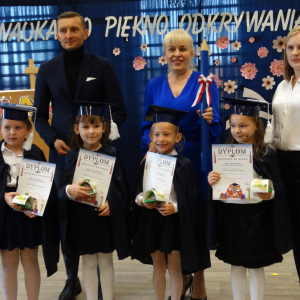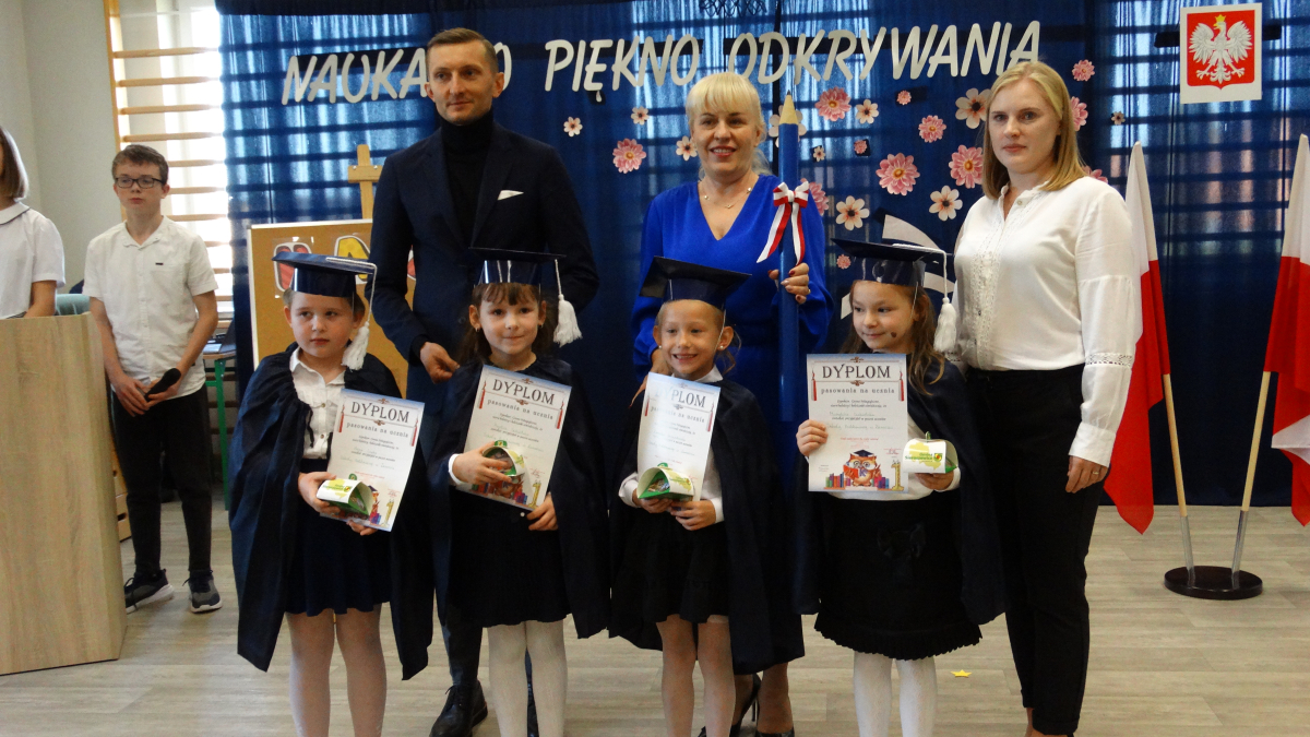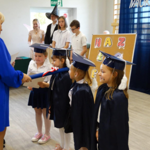 13 października w naszej szkole odbyła się uroczysta akademia z okazji Dnia Edukacji Narodowej, połączona ze Ślubowaniem uczniów klasy pierwszej. W wydarzeniu uczestniczyli zaproszeni goście: pan Bartosz Kubica – Zastępca Wójta Gminy Sieroszewice, pan Tadeusz Zatylny – Radny Gminy Sieroszewice, panie Izabela Jędrzejewska, Julita Zatylna i Dominika Weber – Prezydium Rady Rodziców, pani Janina Siudzińska – emerytowana Dyrektor Szkoły Podstawowej w Zamościu oraz pani Małgorzata Nowacka – emerytowana nauczycielka. Wśród obecnych nie zabrakło także pracowników szkoły oraz rodziców pierwszoklasistów. Uroczystość rozpoczęła część artystyczna przygotowana przez Samorząd Uczniowski, która wprowadziła wszystkich w podniosły nastrój. Następnie nadszedł moment szczególnie ważny dla najmłodszych uczniów – Ślubowanie klasy pierwszej. Zanim dziewczynki złożyły uroczystą przysięgę, wzięły udział w symbolicznej podróży do Krainy Wiedzy. Towarzyszyli im Wróżka i Czarodziej, którzy przeprowadzili dzieci przez trzy magiczne Krainy: Liter, Liczb i Przyjaźni. Po pomyślnym wykonaniu wszystkich zadań pierwszoklasistki złożyły ślubowanie i zostały oficjalnie przyjęte do społeczności szkolnej. Z okazji Dnia Edukacji Narodowej Zastępca Wójta pan Bartosz Kubica złożył serdeczne życzenia wszystkim pracownikom szkoły, podkreślając znaczenie ich pracy i zaangażowania w wychowanie młodego pokolenia. Słowa uznania skierował również pan Tadeusz Zatylny Radny Gminy Sieroszewice, życząc nauczycielom satysfakcji i dalszych sukcesów w pracy dydaktycznej. Uroczystość zakończyła się słodkim poczęstunkiem przygotowanym przez rodziców uczniów klasy pierwszej, który stanowił miłe zwieńczenie tego wyjątkowego dnia.