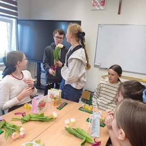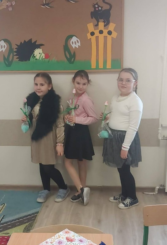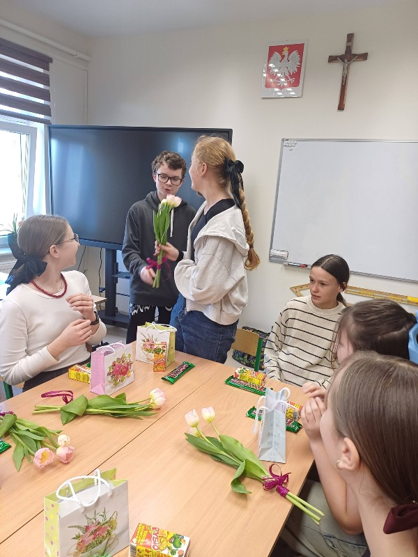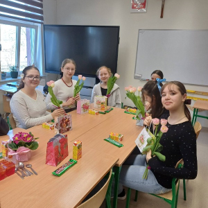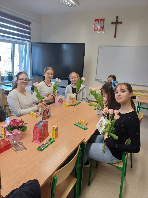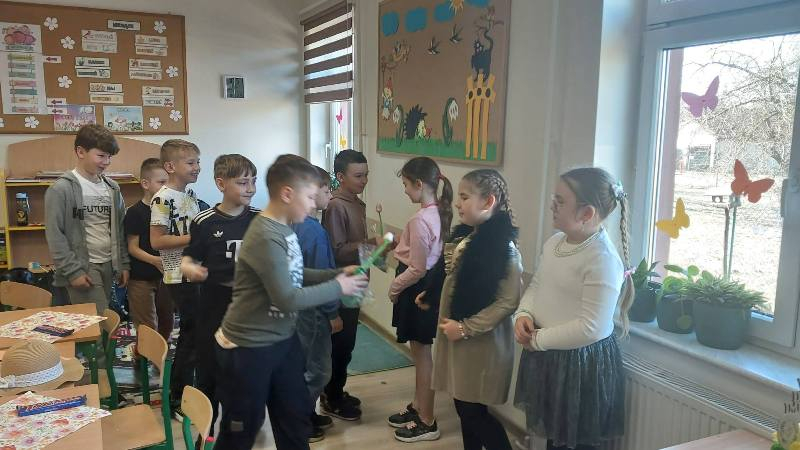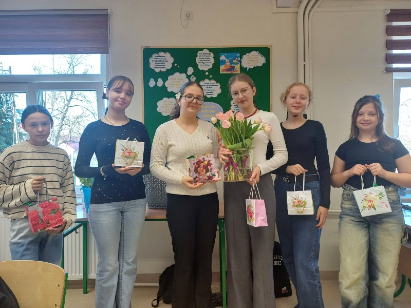 8 marca w naszej szkole świętowaliśmy Dzień Kobiet. Z tej okazji chłopcy złożyli dziewczynkom serdeczne życzenia oraz wręczyli drobne upominki. Nie zabrakło uśmiechów i miłej, radosnej atmosfery. Tego dnia dziewczynki wyglądały wyjątkowo elegancko – wiele z nich przebrało się za prawdziwe damy. Pojawiły się piękne kapelusze, korale oraz stylowe stroje, które dodały uroczystości wyjątkowego charakteru. Był to bardzo miły dzień, pełen życzliwości, uśmiechu i wspólnego świętowania.