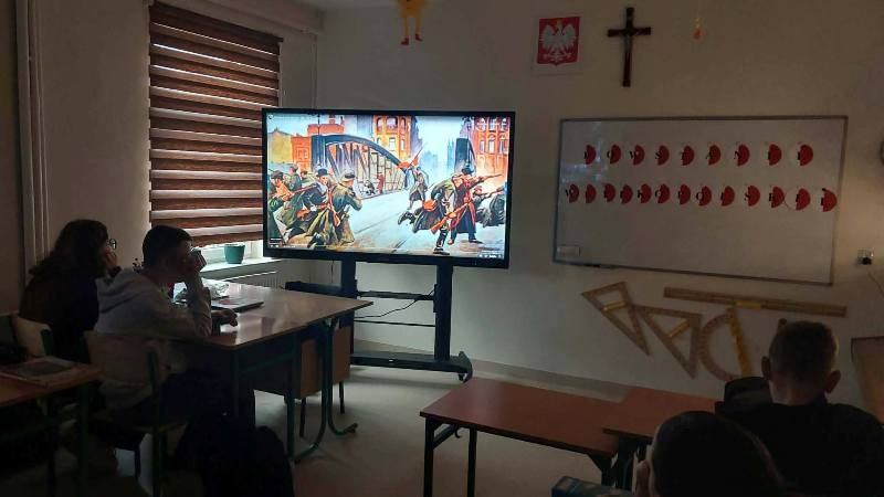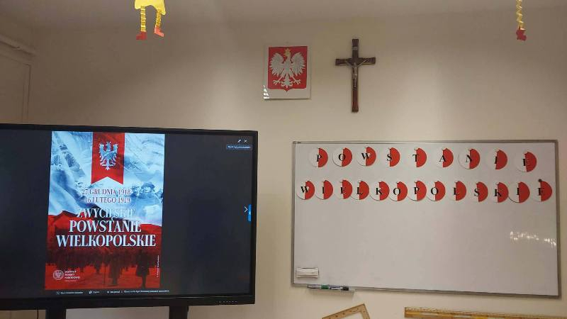 W klasach 6 i 7 odbyła się lekcja historii poświęcona Powstaniu Wielkopolskiemu, zorganizowana z okazji rocznicy wybuchu tego zwycięskiego zrywu niepodległościowego. Podczas zajęć uczniowie poznali przyczyny, przebieg oraz znaczenie powstania dla odzyskania przez Polskę niepodległości. Lekcja miała formę pogadanki połączonej z projekcją filmu edukacyjnego. Spotkanie było okazją do pogłębienia wiedzy historycznej oraz kształtowania postaw patriotycznych i szacunku dla przeszłości.