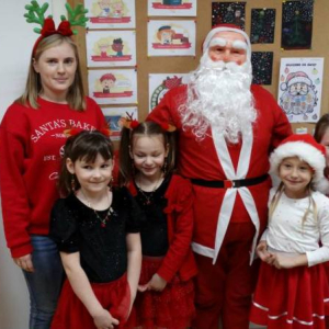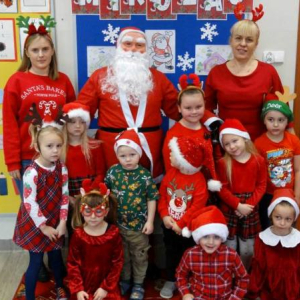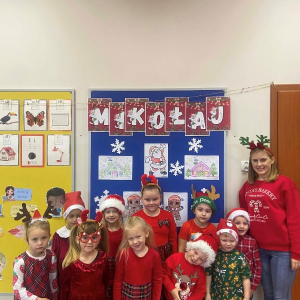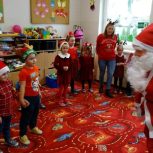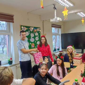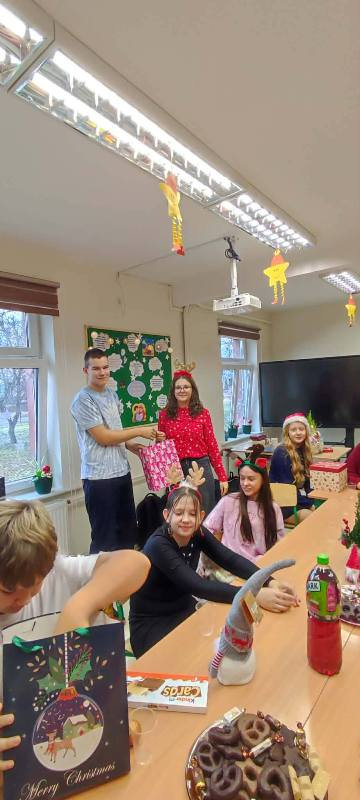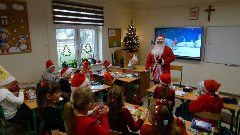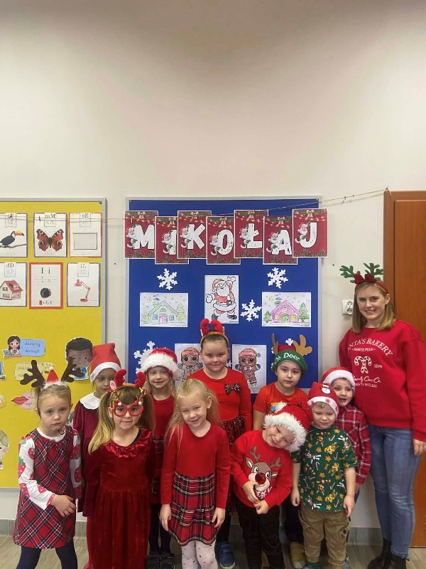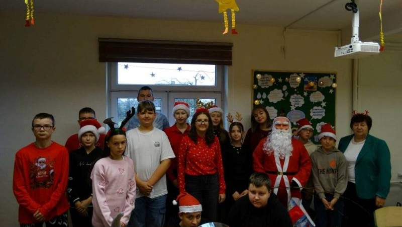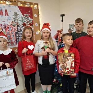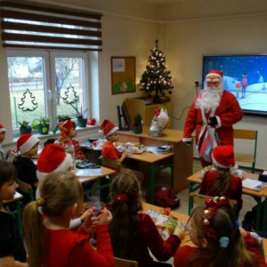 W piątek 5 grudnia w szkole zagościła prawdziwa magia świąt. Świąteczna muzyka, czerwone stroje, mikołajkowe czapki i świąteczne dekoracje stworzyły wyjątkowy klimat. Największą atrakcją był oczywiście Święty Mikołaj, który zawitał do każdej klasy. Młodszym uczniom i przedszkolakom wręczał prezenty osobiście, natomiast starsi uczniowie obdarowywali się wzajemnie przygotowanymi upominkami. Dziękujemy wszystkim za wspólną zabawę i cudowną atmosferę!