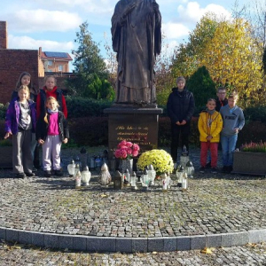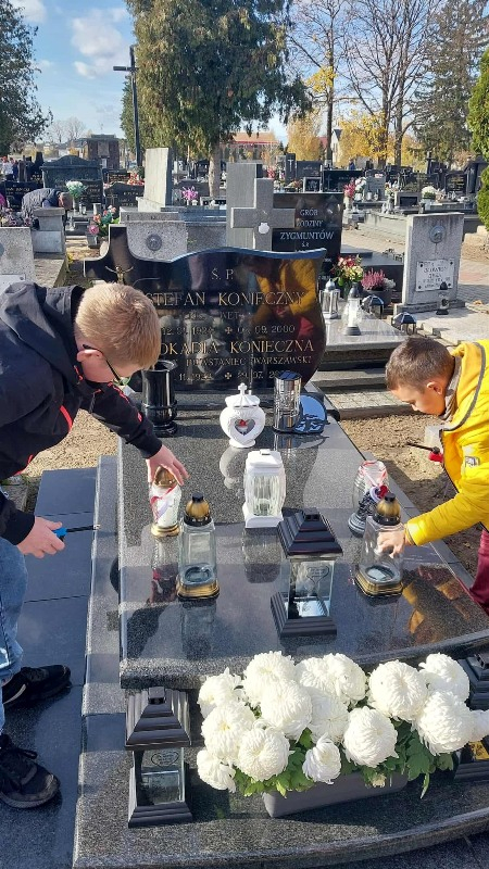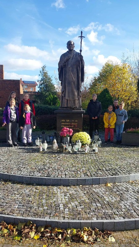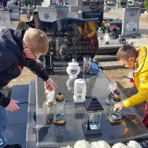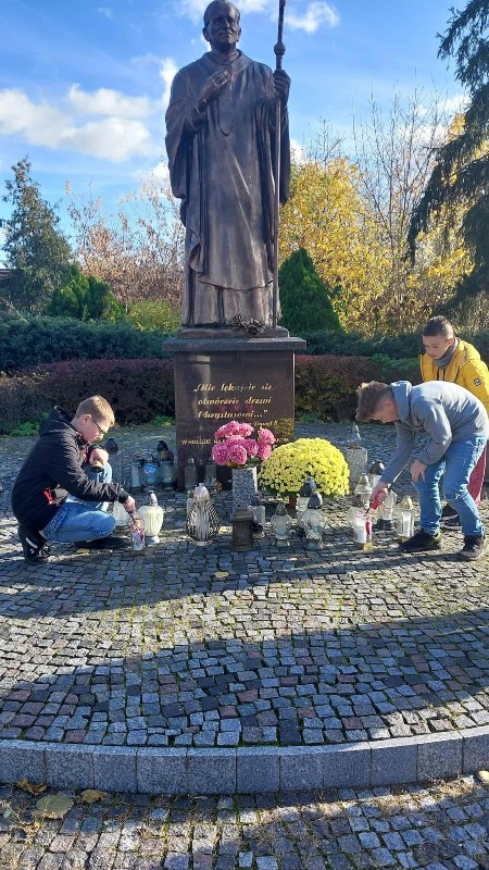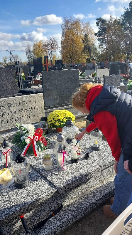 W tym roku mija 100 lat od powstania Grobu Nieznanego Żołnierza w Warszawie – jednego z najważniejszych symboli polskiej pamięci narodowej. Z tej okazji Muzeum Historii Polski zaprosiło szkoły i instytucje do udziału w ogólnopolskiej akcji społeczno-edukacyjnej „Płomień Pamięci”, której celem jest uhonorowanie lokalnych bohaterów – często bezimiennych, spoczywających na cmentarzach w całej Polsce i poza jej granicami. W naszej szkole akcja ta odbyła się z okazji zbliżającego się Dnia Wszystkich Świętych i Narodowego Święta Niepodległości. Jej celem było uczczenie bohaterów walczących o wolność Ojczyzny oraz kształtowanie wśród uczniów postaw patriotycznych i szacunku dla historii. Z inicjatywy Samorządu Uczniowskiego przeprowadzono zbiórkę zniczy, które następnie zapłonęły w miejscach pamięci. Uczniowie własnoręcznie wykonali również symboliczne serduszka z pasków papieru, które zostały zawieszone na zniczach jako znak wdzięczności i symbol akcji „Płomień Pamięci”. Przedstawiciele społeczności szkolnej odwiedzili Pomnik Powstańców Wielkopolskich, Pomnik św. Jana Pawła II, a także groby powstańców wielkopolskich i żołnierzy poległych w walce z hitleryzmem na cmentarzu w Grabowie oraz miejsce rozstrzelania przez żołnierzy niemieckich dwóch mieszkańców Raduchowa. Dzięki tej inicjatywie uczniowie mogli w sposób pełen szacunku oddać hołd bohaterom naszej historii, pielęgnując pamięć o ich poświęceniu i przekazując dalej ogień narodowej pamięci.