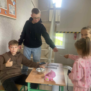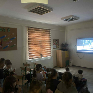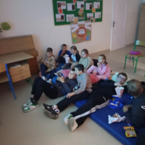 W czwartkowe popołudnie, 9 października, nasza sala zamieniła się w prawdziwe kino. Z inicjatywy Samorządu Uczniowskiego zorganizowano wyjątkowe popołudnie z filmem, podczas którego uczniowie klas I–VII spędzili czas w przyjemnej, kinowej atmosferze. Młodsi widzowie przenieśli się do barwnego świata animacji, oglądając „Zwierzogród” – pełną humoru i wartościowych przesłań opowieść o przyjaźni, odwadze i dążeniu do marzeń. Starsi uczniowie zobaczyli film „Za duży na bajki”, który w zabawny, ale i wzruszający sposób przypomniał, jak ważne w życiu są relacje, pasje i bliskość z innymi. Nie zabrakło również kinowych przysmaków– popcornu, napojów i słodkości. Wszyscy świetnie się bawili, a w szkole panowała radosna, filmowa atmosfera. Dziękujemy Samorządowi Uczniowskiemu za pomysł i organizację przedsięwzięcia.
