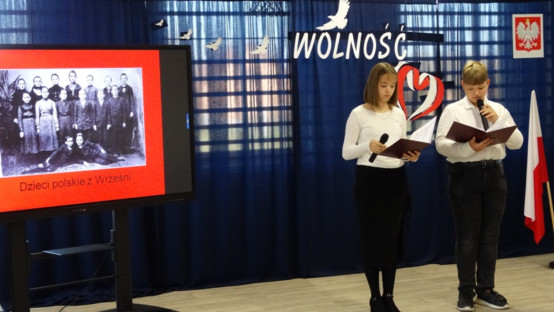 11 listopada to wyjątkowa data w historii naszego kraju – dzień, w którym Polska po 123 latach niewoli odzyskała upragnioną niepodległość. To czas refleksji, radości oraz wdzięczności wobec tych, którzy poświęcili swoje życie, abyśmy dziś mogli cieszyć się wolnością. Z tej okazji 7 listopada w naszej szkole odbyła się akademia upamiętniająca to ważne wydarzenie. Uroczystość rozpoczęła się wzruszającym tańcem w wykonaniu uczniów klas I–III, symbolicznie ukazującym trudny okres zaborów. Następnie uczniowie klasy VII zaprezentowali multimedialną podróż przez dzieje Polski – opowieść o drodze naszego narodu ku niepodległości. Całość została przepleciona pięknymi pieśniami patriotycznymi, które wprowadziły wszystkich w podniosły i refleksyjny nastrój. O godzinie 11:11 nasza szkoła włączyła się w ogólnopolską akcję „Szkoła do hymnu”, wspólnie odśpiewując „Mazurek Dąbrowskiego”. Ten moment jedności i wspólnego śpiewu przypomniał nam, jak ważne są wartości wolności, tożsamości narodowej i miłości do Ojczyzny. Uroczystość była nie tylko lekcją historii, lecz także pięknym świadectwem patriotyzmu, wspólnoty oraz zaangażowania całej społeczności szkolnej.