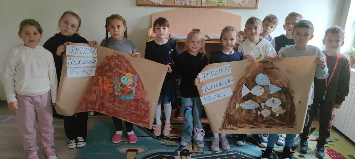 W dniach 29 września – 3 października 2025 r. w naszej placówce realizowano działania w ramach dwóch tematycznych bloków: Tygodnia Budowania Relacji oraz Tygodnia Przeciwdziałania Przemocy Rówieśniczej. Celem przeprowadzonych zajęć było wspieranie rozwoju emocjonalnego i społecznego uczniów oraz kształtowanie pozytywnych postaw sprzyjających budowaniu bezpiecznego i przyjaznego środowiska szkolnego. Podsumowaniem działań było wykonanie gazetki ściennej prezentującej promującej wartości takie jak przyjaźń, współpraca, wzajemny szacunek i bezpieczeństwo.